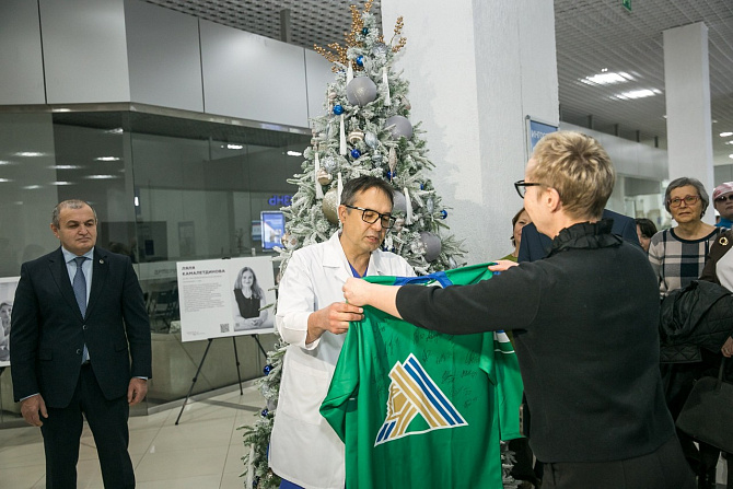 Жестом поддержки пациентов, проходящих лечение стала символическая передача хоккейного свитера «Салават Юлаев» с автографами игроков в Республиканский онкодиспансер. Подарок призван стать талисманом «Силы духа Уфы».
